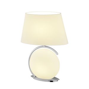 Die Bankamp Nana 5053 Tischleuchte präsentiert sich auch den ersten Blick als wunderschöne Design-Tischleuchte mit klassischem Look. Die Form orientiert sich am Bankamp-Klassiker Alsolo, wurde aber sowohl optisch als auch funktional erweitert. Bei der Tischleuchte Nana wird der bauchige Korpus durch einen ovalen Glasdiffusor aus weißem Opalglas ersetzt, um den sich das schmale Gestell legt, an dem der Schirm befestigt ist. Der Schirm aus Chintz-Stoff erzeugt sowohl im Schlaf- als auch im Wohnzimmer ein angenehmes, blendfreies Licht. Zusätzlich kann bei Bedarf das untere Licht als angenehm freistrahlendes Raumlicht zugeschaltet werden. Durch die eingebauten E27 & E14 Fassungen kann die Nana 5053 Tischleuchte von Bankamp sowohl mit herkömmlichen Halogenleuchtmitteln als auch mit den neuesten energiesparenden LED Leuchtmitteln bestückt werden. Beide Leuchtmittel können über einen Schalter an der Zuleitung separat geschaltet werden. Das macht Bankamp Nana zu einer Tischleuchte, die sowohl als Nachttischlampe als auch als dekorative Leuchte überzeugen kann.