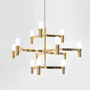 Der moderne Kronleuchter Crown Minor von Nemo macht seinem Namen wirklich alle Ehre. Inspiriert wurden seine Designer zweifellos von den klassischen, rustikalen Leuchtern früherer Tage. Um diese neu aufleben zu lassen, bedienten sie sich ihrer Grundform und verliehen Crown Minor durch die Verwendung edler Materialien sowie moderner Technik zeitgenössischen Charakter. Der Grundkorpus besteht hierbei aus gegossenem Aluminium das in einem weiteren Arbeitsschritt noch poliert wird. Zudem ist auch in den modernen Farben Schwarz matt sowie Weiß matt erhältlich. Die kleinen Opalglaszylinder sorgen bei Crown Minor für ein helles, gleichmäßiges Licht und wirken hierbei wie moderne Kerzen. Auf Anfrage ist diese Leuchte auch mit einem roten Textilkabel lieferbar (Standard ist ein transparentes Kabel).
