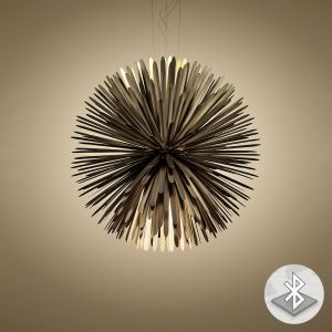 Foscarini Sun-Light of Love MyLight Sospensione LED-Pendelleuchte begeistert als traumhaftes Lichtobjekt mit romantischen Charme in extra hohen Räumen und bietet innovative Technik für eine komfortable Lichtsteuerung. Wie aus einem romantischen Traum entsprungen versteht es die einzigartige Sun-Light of Love MyLight Sospensione LED-Pendelleuchte aus der Feder des niederländischen Newcomers Tord Boontje auf den ersten Blick zu faszinieren, der mit dieser kreativen Schöpfung seinen ersten Entwurf für die italienische Designleuchten-Manufaktur Foscarini präsentiert. Aus hochwertigem Aluminium wird die Leuchte aus 390 kaltgeformten Strahlen mit farbiger Lackierung gefertigt, welche mechanisch in einem zentralen Element befestigt sind. Kugelförmig mit einer fließenden, organischen Formsprache berührt die Sun-Light of Love MyLight Sospensione LED-Pendelleuchte von Foscarini auf schmeichelhafte Art das Herz. Bestückt auf Ober- und Unterseite mit hochmodernen LEDs ist die Pendellampe besonders leistungsstark sowie stromsparend und sorgt im eingeschalteten Zustand mit warm weißen 2700 Kelvin Lichttemperatur für eine herrliche Beleuchtung sowohl nach unten als auch in Richtung Decke und inszeniert sich dabei selbst ohne zu dominieren. Verbunden mit einer nahezu unsichtbaren Aufhängung aus drei Stahlseilen an einem Baldachin scheint die Sun-Light of Love MyLight Sospensione LED-Pendelleuchte im Raum förmlich zu schweben und kann in der Höhe bis ca. 4,0 Meter maximal abgependelt werden. Ausgestattet mit einem Casambi-Modul lässt sich die Leuchte ganz bequem über Smartphone oder Tablet via Bluetooth steuern und in ein bereits bestehendes Smart Home Netzwerk problemlos integrieren. Bestens eignet sich die Sun-Light of Love MyLight Sospensione LED-Pendelleuchte von Foscarini als Einzelleuchte oder gruppiert um großen Räumen mit einem hohen Luftraum z. Bsp. im Altbau sowie großflächigen Gewerbe- und Empfangsräumen einen originellen Charakter zu verleihen.