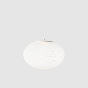 Die Moooi NR2 M LED-Pendelleuchte ist eine äußerst dekorative Leuchte mit technischem Fortschritt. Der rundliche, halbdurchsichtige Schirmkörper der NR2 M LED Pendelleuchte besteht aus Fiberglasfäden, die symmetrisch aneinandergereiht ein feines Netz bilden. Das Netz ist so fein, dass sich das warmweiße LED Licht regelrecht im Schirm verfängt und dieser das Licht wie bei einem geschlossenen Körper diffus streut. Die NR2 M Pendelleuchte rangiert zwischen stylischer Retroleuchte bis futuristischem Designobjekt mit technisch-plastischem Charme. In puncto Fertigungsgüte rangieren alle Moooi Produkte auf höchstem Niveau. Auch die 55 cm breite Moooi NR2 LED-Pendelleuchte glänzt mit erstklassiger Verarbeitung. Jedes Stück wird vollständig in Handarbeit produziert.