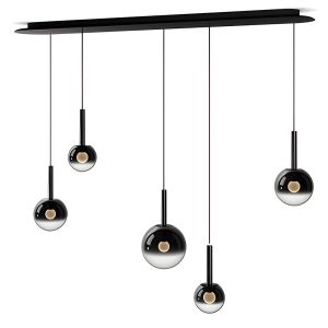 - Fünf Pendel der Luna-Serie kombiniert auf einem langen Baldachin