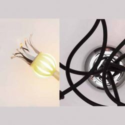 Poppy erinnert in ihrem Aussehen gewollt an eine Mohnblüte. Der kelchartige Schirm, aus mundgeblasenem Glas, erhält in beleuchtetem Zustand eine feine Transparenz und verleiht jedem Raum eine warme Atmosphäre. An dessen Ende befinden sich die Blätter aus Bi-Metall, die sich durch Eigenwärme des Leuchtmittels allmählich ausdehnen. Der flexible, textilummantelte Schlauch ermöglicht es die Leuchte ganz individuell zu formen und auszurichten.