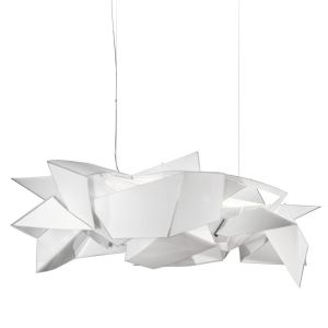 Slamp Cordoba LED-Pendelleuchte zeigt sich als atemberaubendes Lichtobjekt, welches sowohl optisch als auch lichttechnisch überzeugen kann. Inspiriert von der spanischen Stadt Cardoba, in welcher Licht und Architektur geheimnisvollen Charme versprühen, glänzt die gleichnamige LED-Pendelleuchte Cardoba von Slamp genau mit diesen Komponenten. Der bekannte Architekt Daniel Libeskind konzipierte mit der Cordoba eine Hängeleuchte, die Ästhetik vollkommen neu definiert. Die asymmetrische Konstruktion der flachen Böden ist handgefertigt und folgt dabei einem mathematischen Algorithmus. Die auffälligen LED Hängeleuchte ist aus hochwertigem Cristalflex hergestellt, ein Kunststoff, der mit seiner glanzvollen Optik den Raum veredelt. Nicht nur materiell hat die Slamp Cardoba LED-Pendelleuchte einiges zu bieten, auch lichttechnisch überzeugt sie auf ganzer Linie. Das Licht wird gleichmäßig und seidig im Raum verteilt und ist dabei absolut blendfrei. Besonders im Wohnzimmer, aber auch in anderen repräsentativen Räumen ist die Cordoba Pendelleuchte ein faszinierender Eyecatcher.